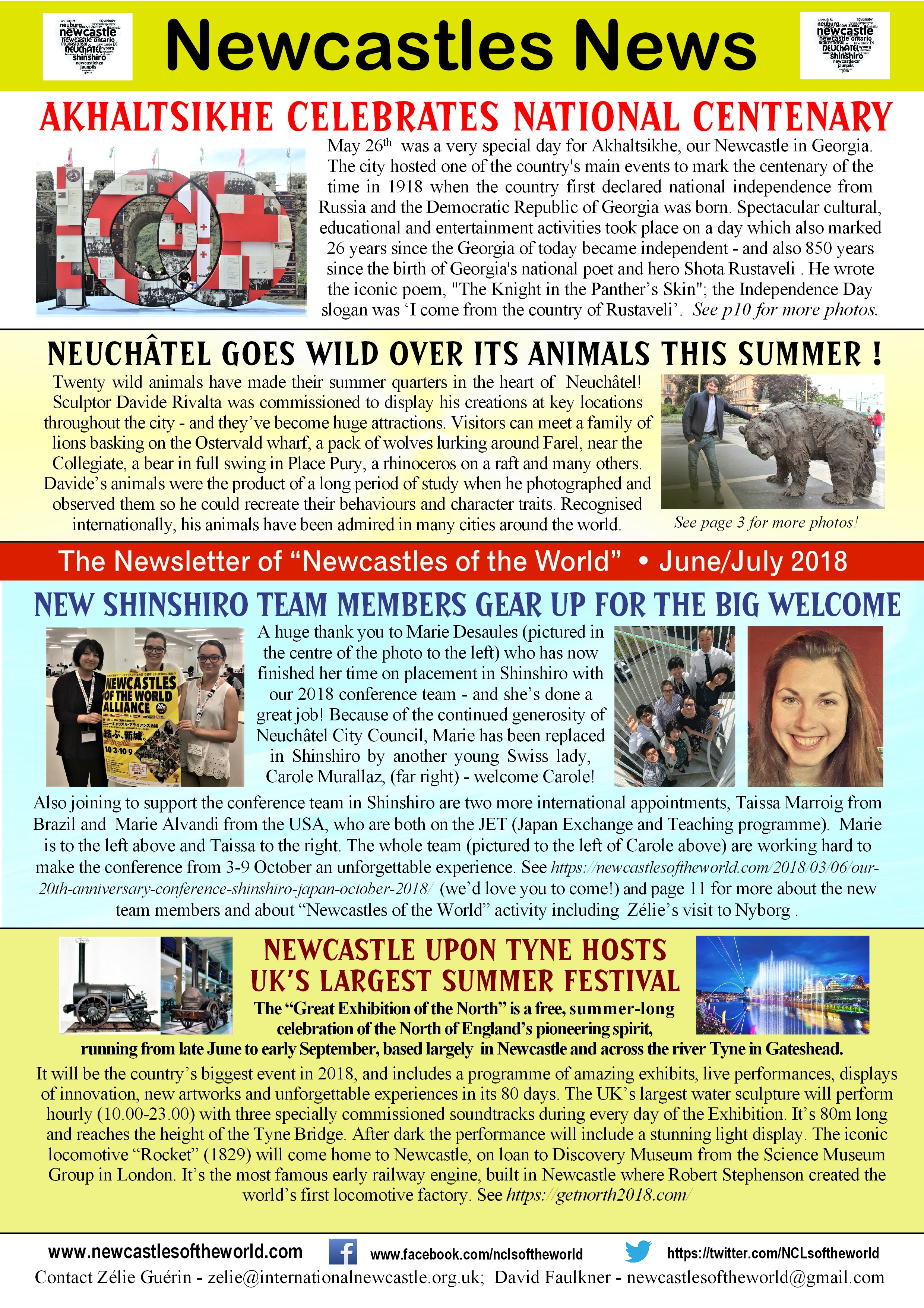 Click here for the full newsletter : Newcastles of the World Newsletter number 23 June – July 2018