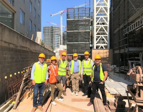 Here is a photograph taken by the University partners making site visits to various revitalisation projects in Newcastle. They are pictured at the RSL vertical residential aged-care village, i.e. high-rise CBD accommodation as opposed to regular aged-care models which are single story and suburban or even rural. Dr Marcus Jefferies (University of Newcastle AUS) on the left and Professor Bob Giddings (Northumbria University, Newcastle upon Tyne, UK) is third from the right.